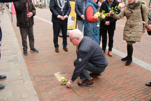 Burgemeester Renze Bergsma vertelde over het belang van het leggen van Stolpersteine. Juist in deze tijd, waarin de spanningen in het Midden-Oosten hoog oplopen en het antisemitisme ook in Nederland weer meer en meer aanwezig is, is het van het grootste belang om de slachtoffers van de Holocaust te herdenken.